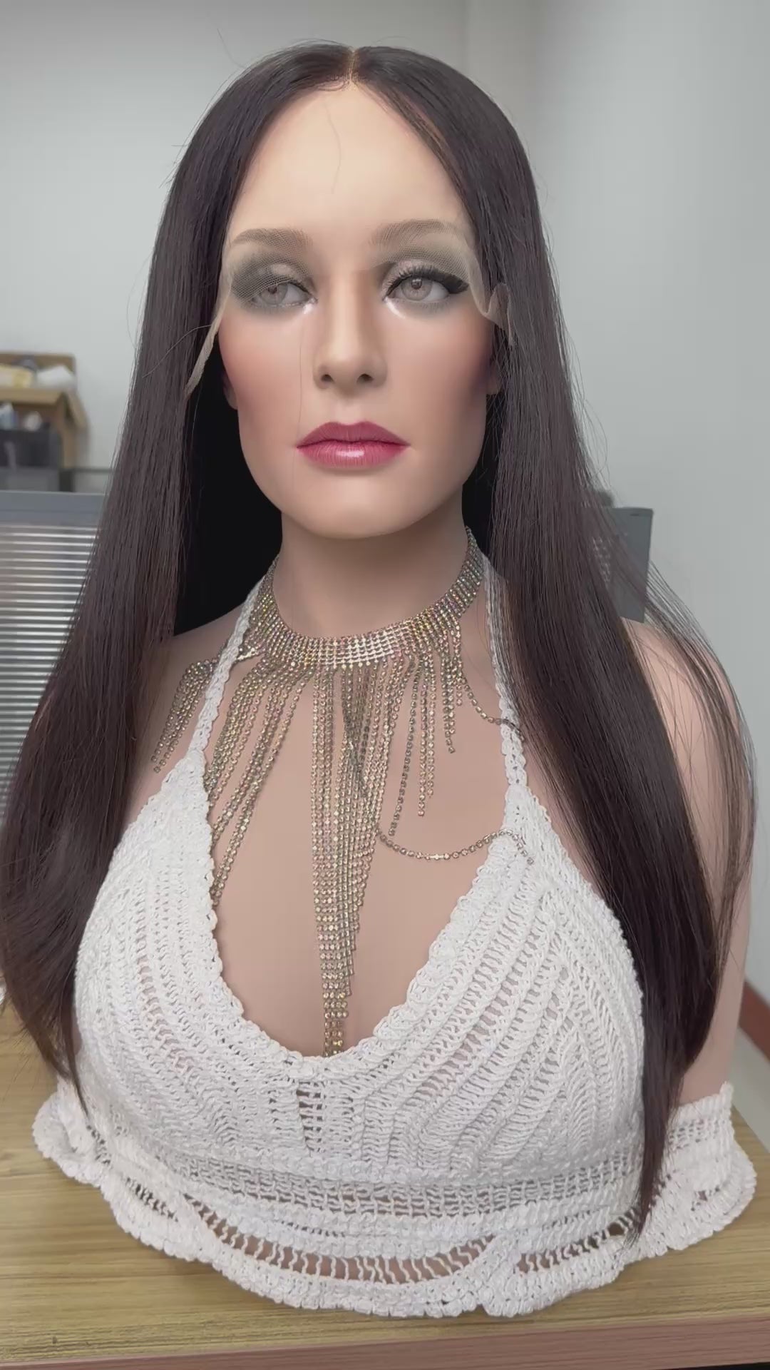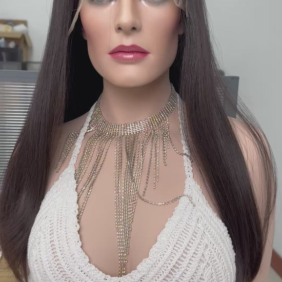 Darkest brown chocolate sleek lace top wig